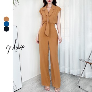 Set bộ nữ trơn áo thắt nơ kèm quần ống suông dài MIMIX CW8230