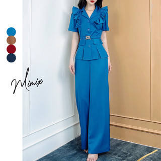 [ Tặng kèm dây nịt ] Set bộ rời áo cổ lật phối bèo kèm quần ống suông dài MIMIX CP7225