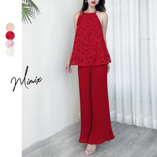 Set bộ áo yếm ren hoa cột nơ kèm quần dập ly MIMIX CW2125 + CW3120