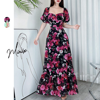 Đầm maxi nữ hoa cổ vuông tay nhún MIMIX CY4220