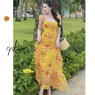 Đầm maxi nữ hoa xếp ly cúp ngực nữ tính MIMIX DB8230