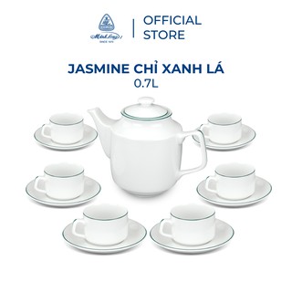 Bộ Ấm Chén Trà Sứ Minh Long 0,7 L - Jasmine - Chỉ Xanh Lá