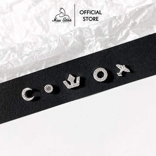 Bông tai bạc nữ Miuu Silver 5 mẫu đính đá máy bay, vương miện, mặt trăng nữ tính, thanh lịch