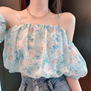 Áo Croptop Trễ Vai Tay Cánh Bướm In Họa Tiết Hoa Ngọt Ngào Thời Trang Mùa Hè Quyến Rũ Cho Nữ Mới