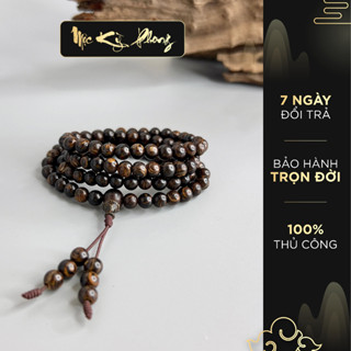 Vòng Trầm Hương Mix Lu Ngọc Bọc Vàng 108 Hạt Nâu Sẫm MỘC KỲ PHONG - Bảo Hành Hương Thơm Trọn Đời