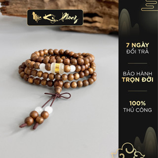 Vòng Trầm Hương Mix Bánh Xe Pháp Luân 108 Hạt Nâu Sẫm Mộc Kỳ Phong - Bảo Hành Hương Thơm Trọn Đời