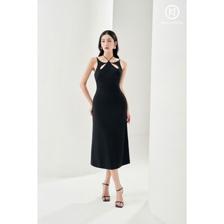 MOLLYNISTA - Đầm tơ suông nhún cổ yếm Freesize thanh lịch quyến rũ nữ tính thiết kế cao cấp