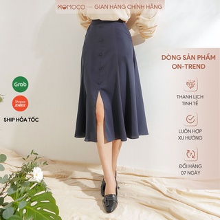 Chân Váy Xòe Midi MOMOCO Khuy Bọc Xẻ Tà Thân Trước Chất Trượt Mêm Không Nhăn M2837