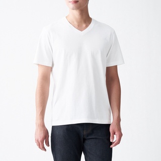 Muji Áo Thun Vải Jersey Cotton Ấn Độ Ngắn Tay Cổ V