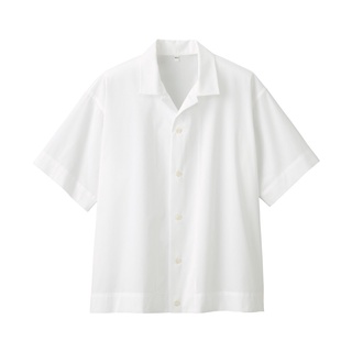 Muji Áo Sơ Mi Vải Co Giãn Cổ Mở Ngắn Tay