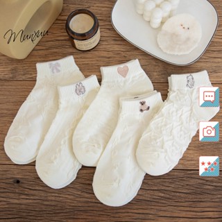 Tất nữ cổ ngắn MUNXUU họa tiết dễ thương phối dập nổi cao cấp vải cotton co dãn thoáng mát - T13