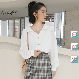 Áo sơ mi kiểu trắng Munxuu, thiết kế cổ V thủy thủ phong cách trẻ trung - SP15