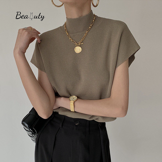 [MURIOKI] Áo Thun Dệt Kim Sát Nách Cổ Cao Kiểu Pháp Xinh Xắn Cho Nữ