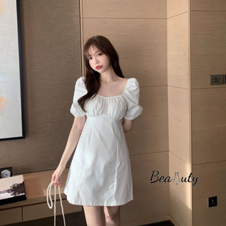 [MURIOKI] Đầm Dáng Chữ A Tay Phồng Cổ Vuông Màu Trắng / Tím Phong Cách Pháp Tinh Tế Thời Trang Cho Nữ