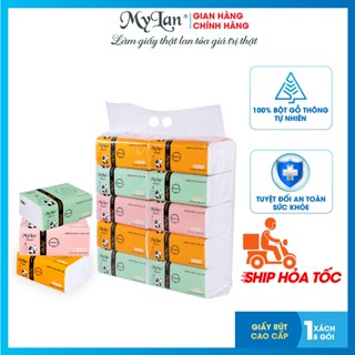 LỐC 10 gói, Khăn giấy rút cao cấp Mylan, rút gấu trúc 3 màu