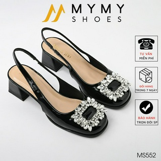Giày cao gót nữ mymy shoes da lì mũi vuông mặt đá hình 3p MS539