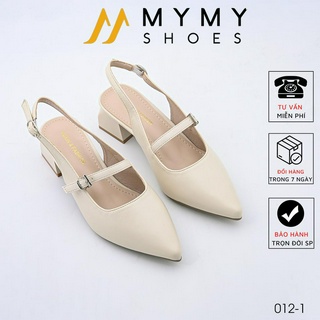 Giày cao gót nữ Mymyshoes 666-42 gót vuông 4p quai ngang màu đen, màu trắng