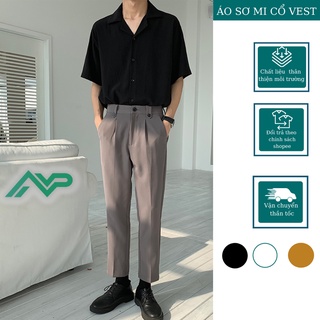 Áo Sơ Mi Ngắn Tay Nam Nữ Cổ Vest NPV Trắng, Đen, Nâu - Kiểu sơ mi tay ngắn form rộng Cổ Vest