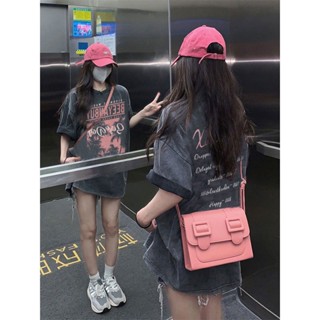 Áo Thun Cotton Tay Ngắn Dáng Rộng In Họa Tiết Thời Trang Đường Phố Hàn Quốc Cho Nữ