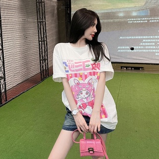 NRVP Áo thun nữ tay ngắn dáng rộng in hoạt hình kiểu Hàn Quốc