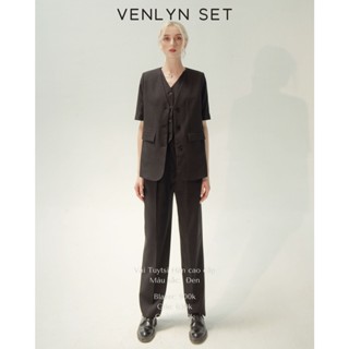 Set suit basic ONMIX (Balzer + Quần Ống Suông) - Abby Set - Vải Tuytsi Hàn Đen Trơn