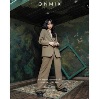Set Suit 2 Khuy Dài Tay ONMIX Beige, Vải Tuytsi Hàn Cao Cấp