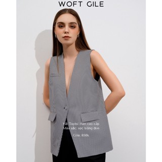 Áo Gile Dang Suông ONMIX - Woft Gile - Vải Tuytsi Hàn - Kẻ Trắng Đen