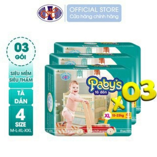 Bộ 3 Gói Tã bỉm dán Paby's: S147/M138/L129 /XL123 (Date Mới /Tem chống hàng giả VietCheck)