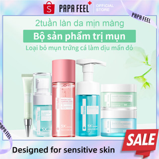 PAPA FEEL Mặt nạ đất sét chiết xuất ngải 55g & Sữa rửa mặt 100ml & Salicylic Acid Gel Giảm Mụn 10g & 5X Ceramide Serum 20ml & Toner AHA&PHA 100ml