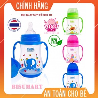 Bình Sữa cổ rộng tay cầm nhựa PP Pappi 250ml Thailand BPA FREE