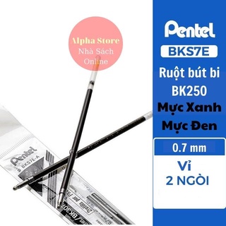 Ruột bút bi Pentel BK250, ngòi bút BKS7E nét bút 0.7 mm màu mực xanh/ đen- Vỉ 2 ngòi