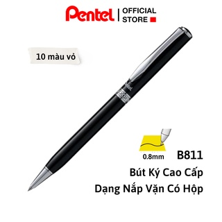 Bút Ký Cao Cấp Pentel B811 Ngòi Bi 0.8mm Mực Xanh | Thiết Kế Nắp Vặn Thanh Lịch | Nhiều Màu Vỏ | Nét Viết Trơn Mượt