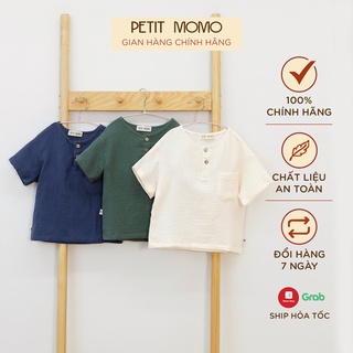 Áo Cộc Tay Bé Trai (1-6 Tuổi) PETIT MOMO Dáng Cổ Tròn, Thiết Kế Túi Ngực Xinh Xắn, Vải Xô Muslin Cao Cấp H142