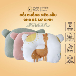 Gối cho bé sơ sinh chống méo đầu vải xô muslin bông lông vũ microfiber Petit Town