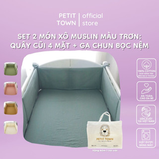 Quây cũi và ga cũi vải xô muslin Petit Town màu trơn