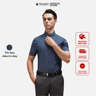 Áo sơ mi công sở nam ngắn tay Phan Nguyễn họa tiết chấm bi độc đáo, màu sắc đơn giản lịch lãm, chất liệu mềm mát SMC.346