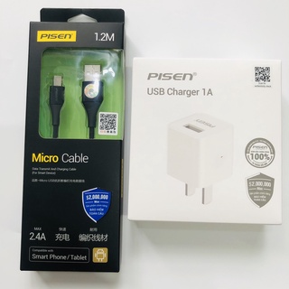 Combo Sạc Pisen I Charger 1A Micro Dài 1,2m - HÀNG CHÍNH HÃNG