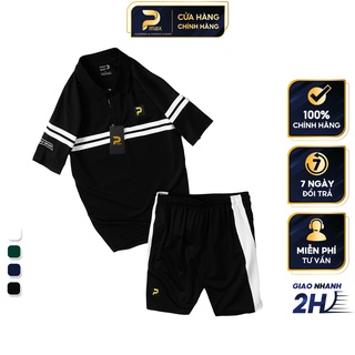 Bộ quần áo hè nam cộc tay PMAX form dáng slimfit cổ polo kẻ sọc thể thao