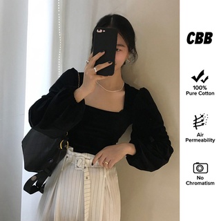 Porozi Áo kiểu tay dài kiểu phồng thiết kế cổ vuông phong cách Hàn Quốc thời trang cho nữ