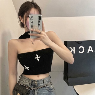 QKOOLE Áo Croptop Dệt Kim Hai Dây Ôm Dáng Phong Cách Hàn Quốc Thời Trang Mùa Hè Dành Cho Bạn Nữ
