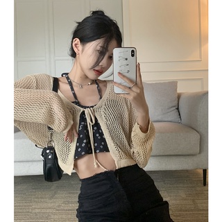 QKOOLE Áo khoác cardigan/ Áo hai dây họa tiết hoa phong cách Hàn Quốc cho nữ