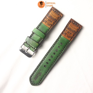 Dây Đồng Hồ Da Thật RAM Leather Simple Da Bò Italia Vegtan Khắc Trống Đồng Việt Nam Xanh Lục Bền Đẹp