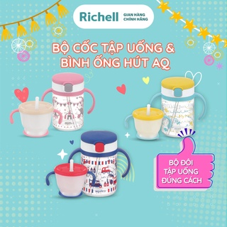 Bộ cốc tập uống 3 giai đoạn AQ & bình ống hút AQ Richell Nhật Bản | Baby