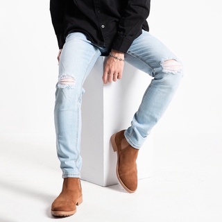 Quần bò nam rách gối xanh nhạt Routine bó sát body chất co giãn hàng cao cấp xuất Hàn 2019
