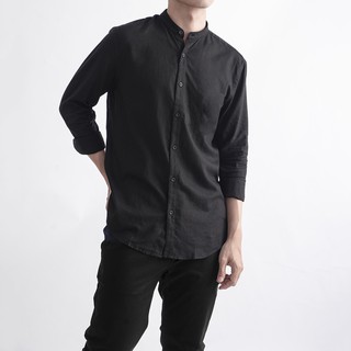 Áo sơ mi nam cổ tàu - Mẫu sơ mi nam cổ trụ linen dài tay Routine