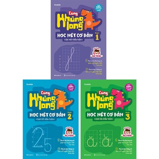 Sách - Combo 3 cuốn Cùng Khủng long học nét cơ bản Nét số chữ cái đầu tiên Quyển 1 2 3 bé trai MEGAMN9299