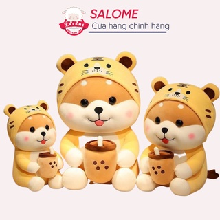 Gấu Bông Chó Shiba Ôm Trà Sữa SALOME, Thú Nhồi Bông Chó Đội Nón Hổ Cute