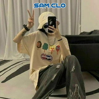 Áo phông tay lỡ nam nữ SAM CLO thun form rộng dáng Unisex - mặc cặp, nhóm, lớp in HOẠT HÌNH POPSICLE