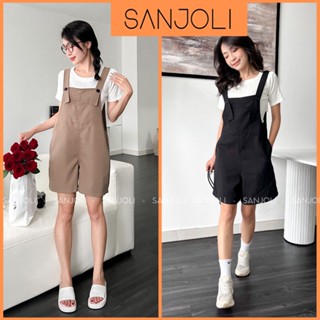 Quần Short Nữ SANJOLI Yếm Quần Ngắn Form Rộng Dây Đeo Có Thể Điều Chỉnh Vải Cotton Có Túi Vintage Màu Nâu Đen QD005