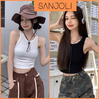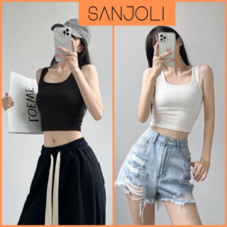 Áo Ba Lỗ Nữ SANJOLI Croptop Kiểu Ôm Body Sát Nách Sexy Dáng Ngắn Chất Thun Gân Màu Trắng Hàn Quốc Mùa Hè Năng Động AO008